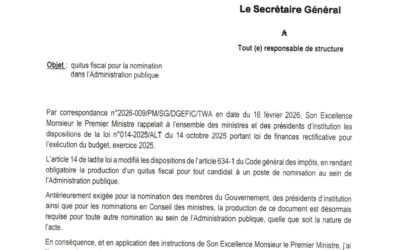Administration publique : le quitus fiscal désormais obligatoire pour toute nomination.