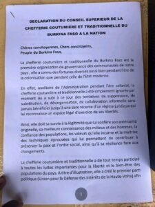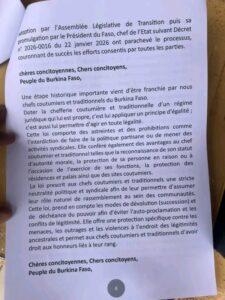 Burkina – La chefferie coutumière appelle à l’unité et salue les avancées juridiques.