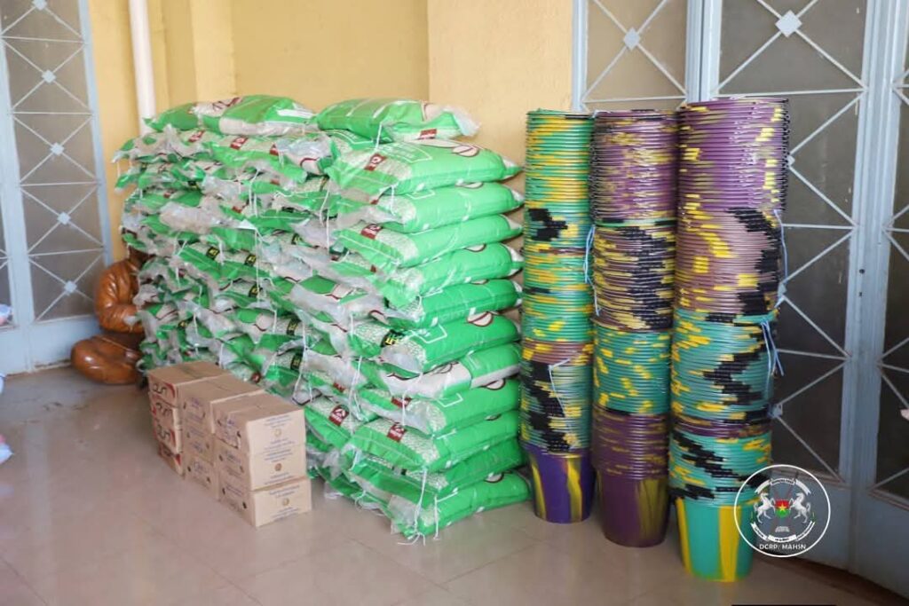 Le don offert par le Mogho Naaba comprend : 300 seaux, 300 nattes, 300 couvertures, 300 bouilloires, 40 sacs de riz de 100 kg, issus de la production locale non décortiquée, 10 cartons de savon, 2 tonnes de riz conditionné en sacs de 25 kg.