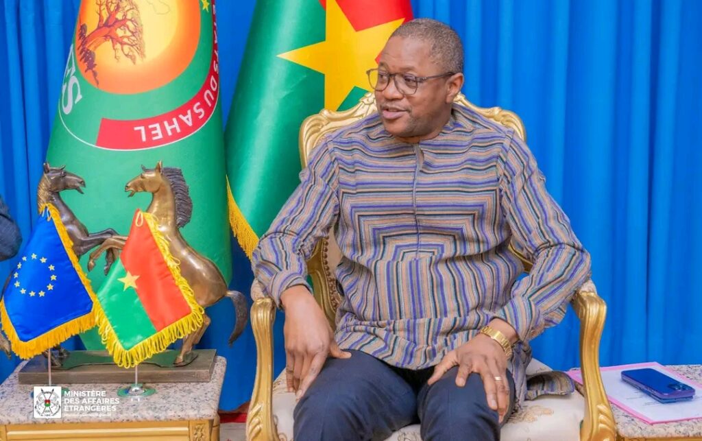 Le ministre des Affaires étrangères, Karamoko Jean Marie Traoré, a reçu en audience, dans la soirée du 10 février 2026 à Ouagadougou, l’Envoyé spécial de l’Union européenne pour le Sahel, João Cravinho. Il s’agit de la troisième visite du représentant de Bruxelles au Burkina Faso.