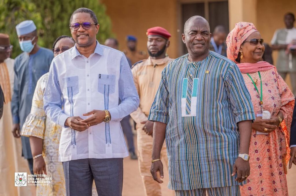 Le Général de Division Célestin SIMPORE était accompagné du Président de la Commission nationale AES Monsieur Bassolma BAZIE ; du ministre des Affaires étrangères, SEM Karamoko Jean Marie TRAORE ; du ministre chargé du Commerce, Monsieur Serge Gnaniodem PODA et du ministre délégué Madame Bêbgnasgnan Stella Eldine KABRE/KABORE. Quelques minutes plus tard, les deux délégations burkinabè et malienne ont dressé la haie d’honneur pour accueillir ensemble, leurs frères du Niger avec à leurs têtes le ministre d’Etat, ministre de la Défense nationale, le Général d’Armée Salifou MODY.